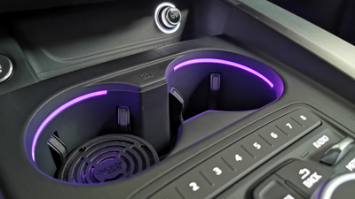 - Cup holder with LED light bar