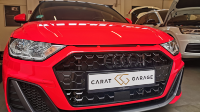 Originales schwarzes Audi Logo/Ringe für den Kühlergrill am Audi A1 GB.