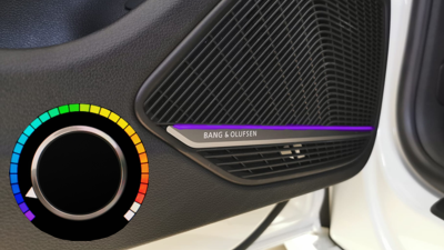 Ab Werk sind die B&O Lautsprecher in der Fahrer und Beifahrertür weiß beleuchtet. Mit diesem Set können Sie die weiße Beleuchtung auf mehrfarbig umrüsten.