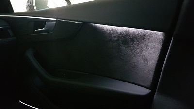 Komplettset für das Nachrüsten der originalen Ambientebeleuchtung in den Türen in der Audi A4 B9 8W Limousine.