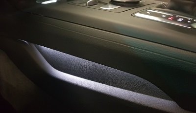 Komplettset für das Nachrüsten der Ambientebeleuchtung links und rechts in der Mittelkonsole im Audi A5 B9 F5 Sportback.