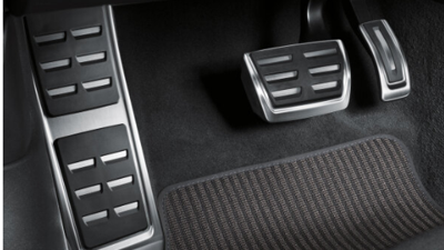 Original aluminium Pedalkappen Komplettset mit Fußstütze passend für den Audi Q3 F3 mit Automatikgetriebe.