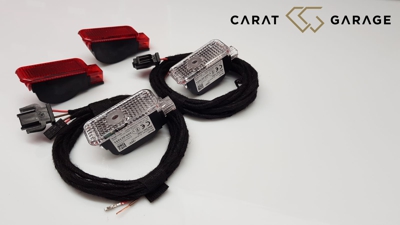 Komplettset für das Nachrüsten der originalen Logo Projektoren mit Warnbeleuchtung am Audi Q5 8R, wenn keine LED Einstiegs-/Warnbeleuchtung vorhanden ist.