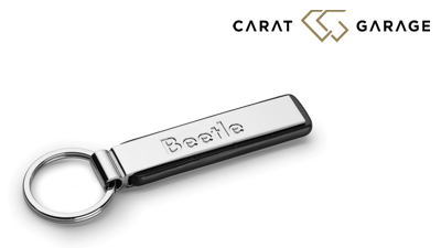 Hochwertiger Metallschlüsselanhänger in Kombination mit PU-Leder. Der Artikel trägt den Schriftzug Beetle als Gravur.