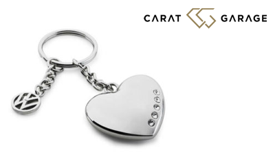 Hochwertiger Metallschlüsselanhänger in Kombination mit einem Herz und VW-Logo.